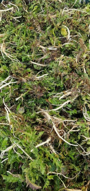 - 물기를 제거한 냉이를 적당한 크기로 자릅니다.